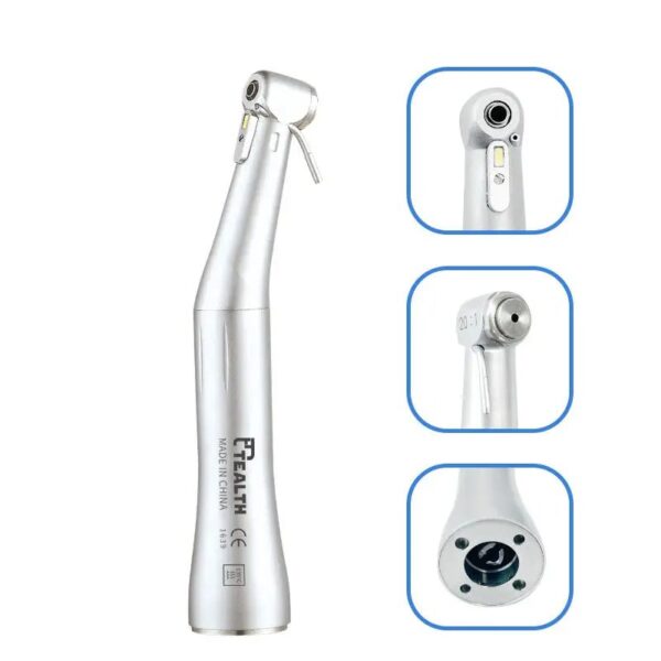 - ورودی و خروجی آب: در برخی مدلهای آنگل، جهت انتقال و پاشش آب بر روی دسته محصول یک دکمه قرار دارد که دندانپزشک جهت پاشش از این دکمه استفاده میکند. در برخی دیگر مجرای ورودی و خروجی آب مستقیماً به یونیت متصل است و دندانپزشک با فشار پدال پاشش آب را انجام میدهد.