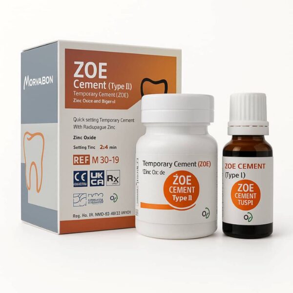 سمان موقت ZOE مروابن این محصول به صورت 30 گرم پودر و 18 میلیلیتر مایع عرضه میگردد.